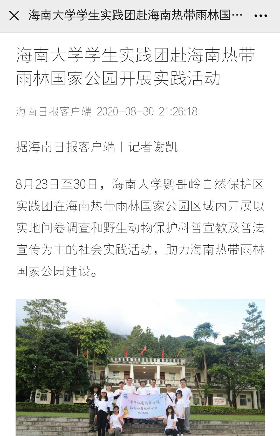 海南日报对鹦哥岭自然保护区实践团的新闻报道