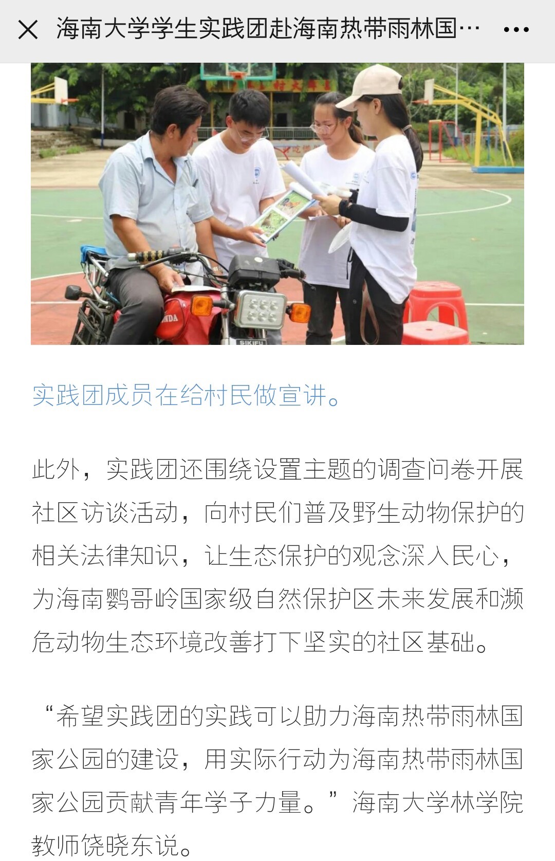 8月23日至28日,william威廉英国官网鹦哥岭自然保护区实践团在海南热带雨林国家公园区域内开展以实地问卷调查和野生动物保护科普宣教及普法宣传为主的社会实践活动,助力海南热带雨林国家公园建设。