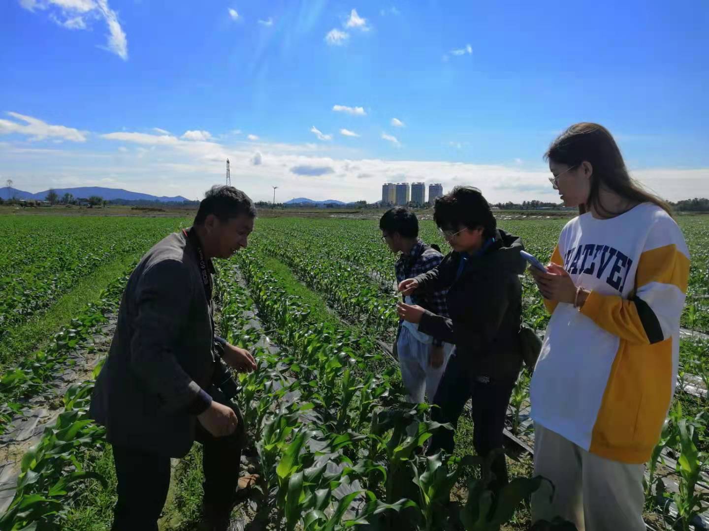 在远景村田间,学院师生查看了甜玉米和圣女果的病虫害发生情况,并进行现场采样。学生志愿者发现并确认了甜玉米苗上已有草地贪夜蛾害虫为害,李增平教授向农户指出了玉米苗上出现的氯吡嘧磺隆除草剂药害,并现场指导学生针对上述病虫害一并开出防治农药配方,指导农户科学防控。随后,师生和农户就预防玉米病虫害发生、防止土壤板结、避免土壤重金属超标等问题进行了深入交流探讨。