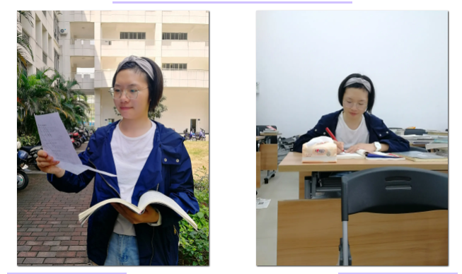 其实我是一个性格比较像男孩子的女生,所以也有大部分男学生的通病——英语差。在大一下学期有去美国直接读Ph.D的想法后,从小不爱学英语的我发现:英语,是横亘在我踏出国门面前的一道鸿沟。放弃自己的目标向来不是我一贯作风,在我心中坚定将英语学好的信念总是比外界动摇我目标的声音来的响亮。咬定青山不放松。我知道自己英语底子差,便付出别人三倍的努力与汗水。早上6:00图书馆楼下的轻声英语朗读是这我对于这所大学最长情的告白;白天六七个小时在图书馆的英语文章精读和写作高强度训练是我最踏实的挥洒;晚上12:00的TED听力是我收到最鼓舞人心的声音。无数个日日夜夜,风雨无阻,从未间断!踏实做好每一天的人总会成为上帝的宠儿!