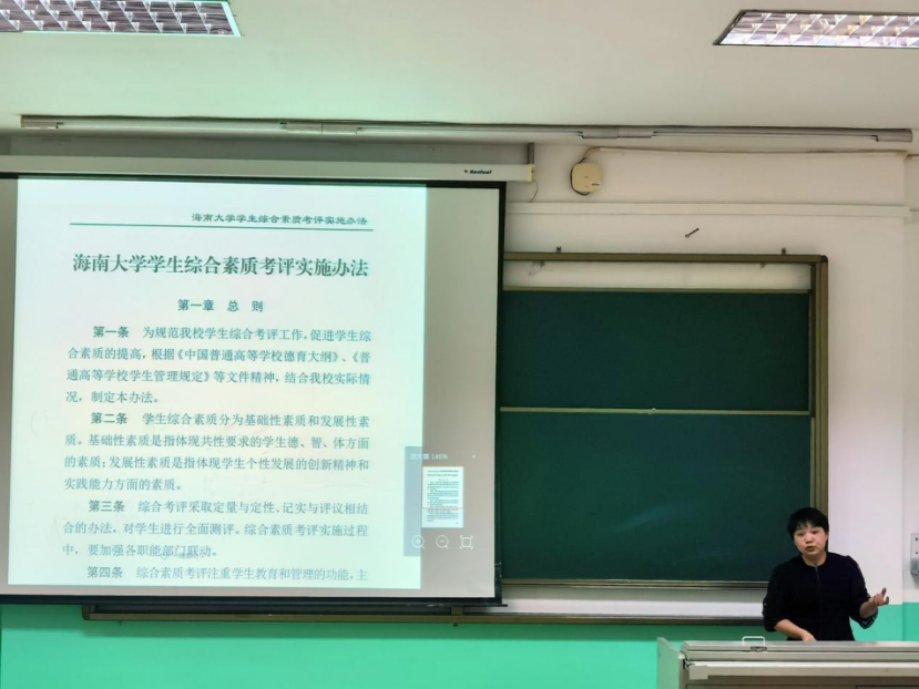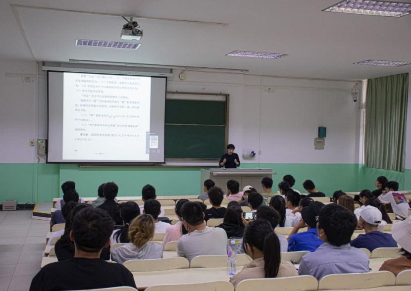 讲座伊始,沈老师对学校整体的资助工作作了简要介绍,重点解读了高校家庭困难学生资助政策体系,从资助范围、申请条件、资助标准、申请时间等方面依次进行了详细的讲解。随后,分别就综合素质考评、学生奖励办法、优生评选、奖助学金评定、校内资助等资助育人工作也做了具体的说明。最后,沈老师提醒大家注意个人征信问题,呼吁大家利用好“金钟罩”,提高诚信意识,避免对自己的未来产生影响。