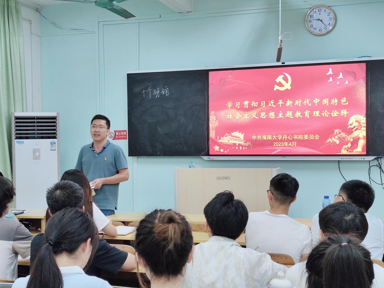 为深入开展学习贯彻习近平新时代中国特色社会主义思想主题教育,扎实推进书院党支部建设与发展,4月23日晚上,丹心书院在儋州校区3105室开展学习贯彻习近平新时代中国特色社会主义思想主题教育理论诠释暨支部党建提质增效工作交流会,书院党委书记姚天增出席活动,辅导员徐腾,各党支部支委,党小组组长和学生党建联合会学生干部参加活动。
