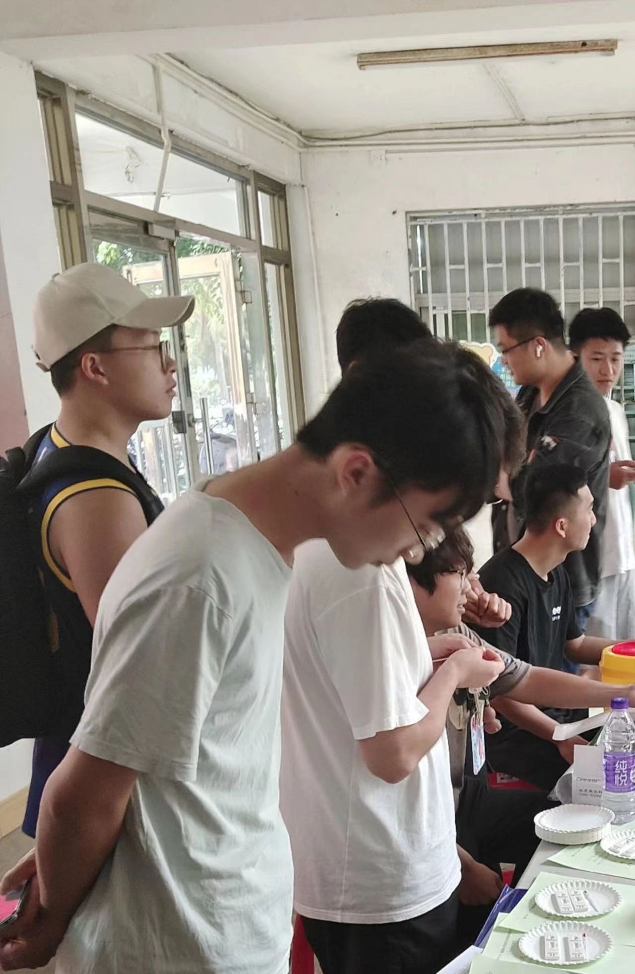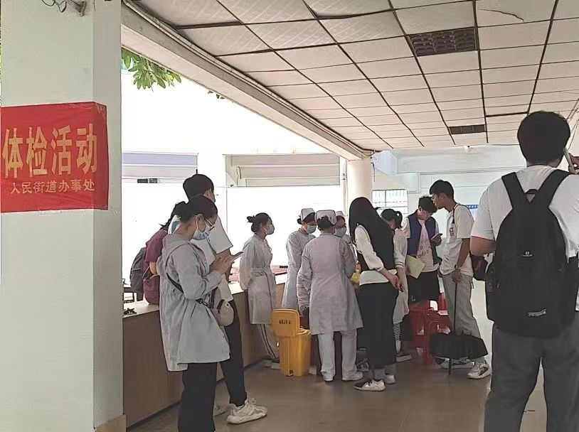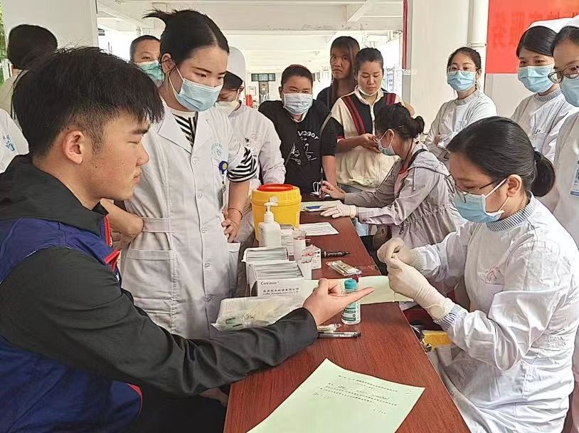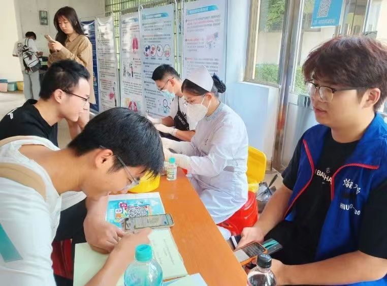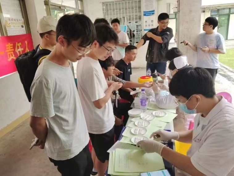 医护人员为同学们进行采血等体检工作