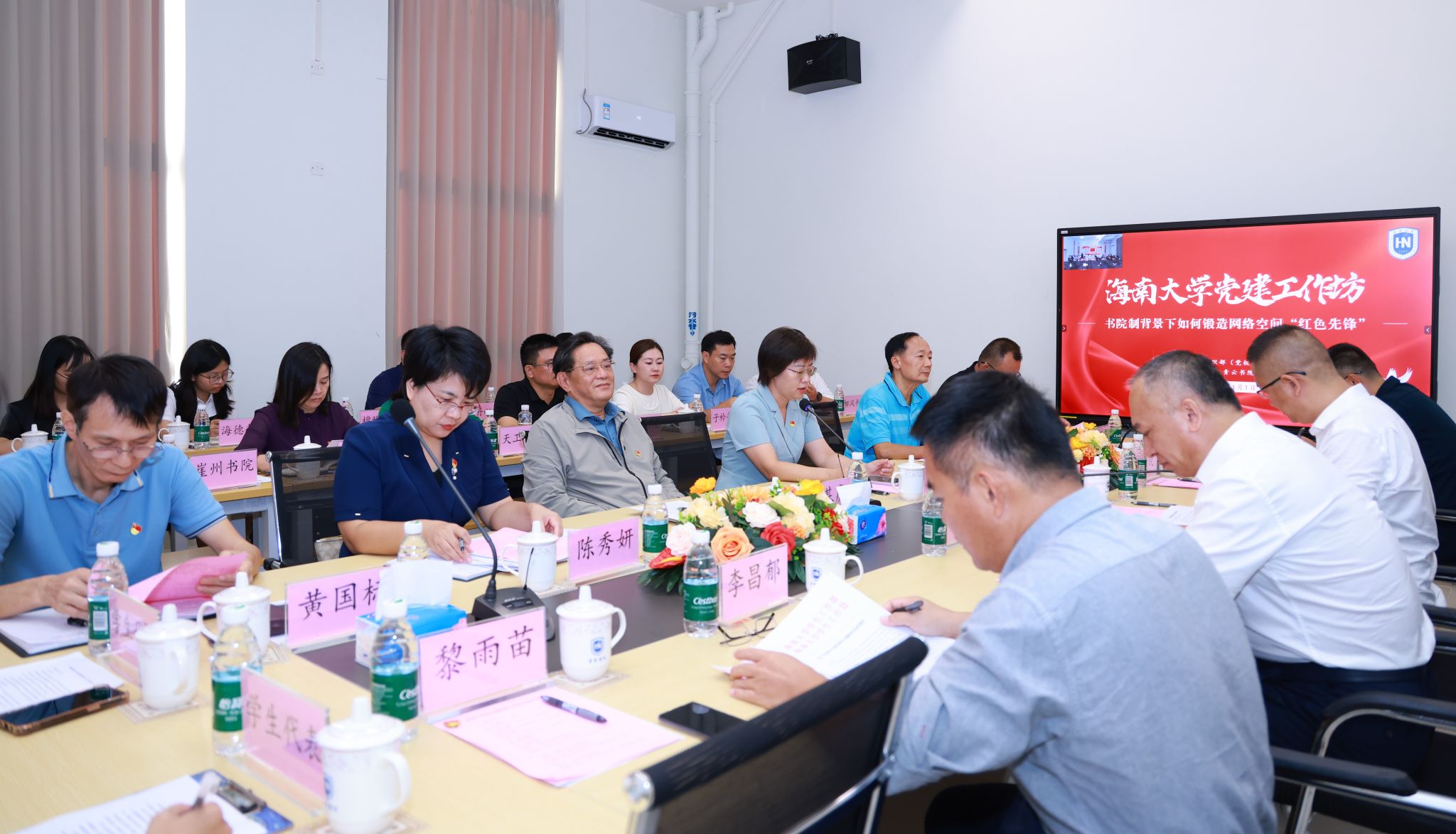 马克思主义学院教授赵福生、宣传部副部长黎雨苗、国际传播与艺术学院党委副书记蒋锐分别围绕“舆论引导工作”“网络思政工作”等进行分享。青云书院党委书记罗国忠、丹心书院党委副书记(主持工作)贺加贝分别就书院网络思政工作特色亮点作专题报告。海德书院学生党建中心代表、学校网络思政队伍学生代表以在学生工作中遇到的问题及解决措施进行交流分享。