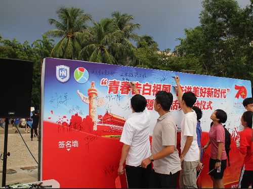 师生在签名版上写出对祖国的告白