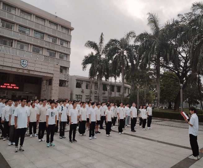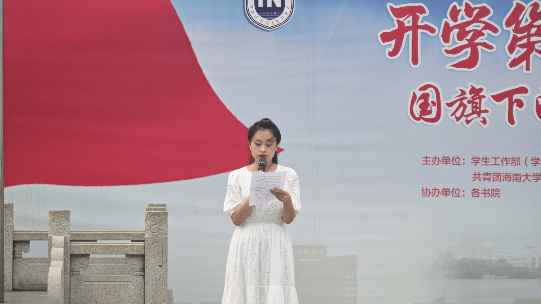 椰风书院学生代表国旗下的演讲活动现场