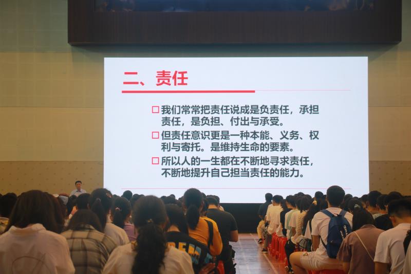 为进一步培养学生的责任意识,鼓舞全体新生用崭新的面貌面对未来的校园生活,9月29日下午,william威廉英国官网党委常委、副校长胡新文在海甸校区联谊馆做“青春如歌”——2020年新生入学专场报告会。