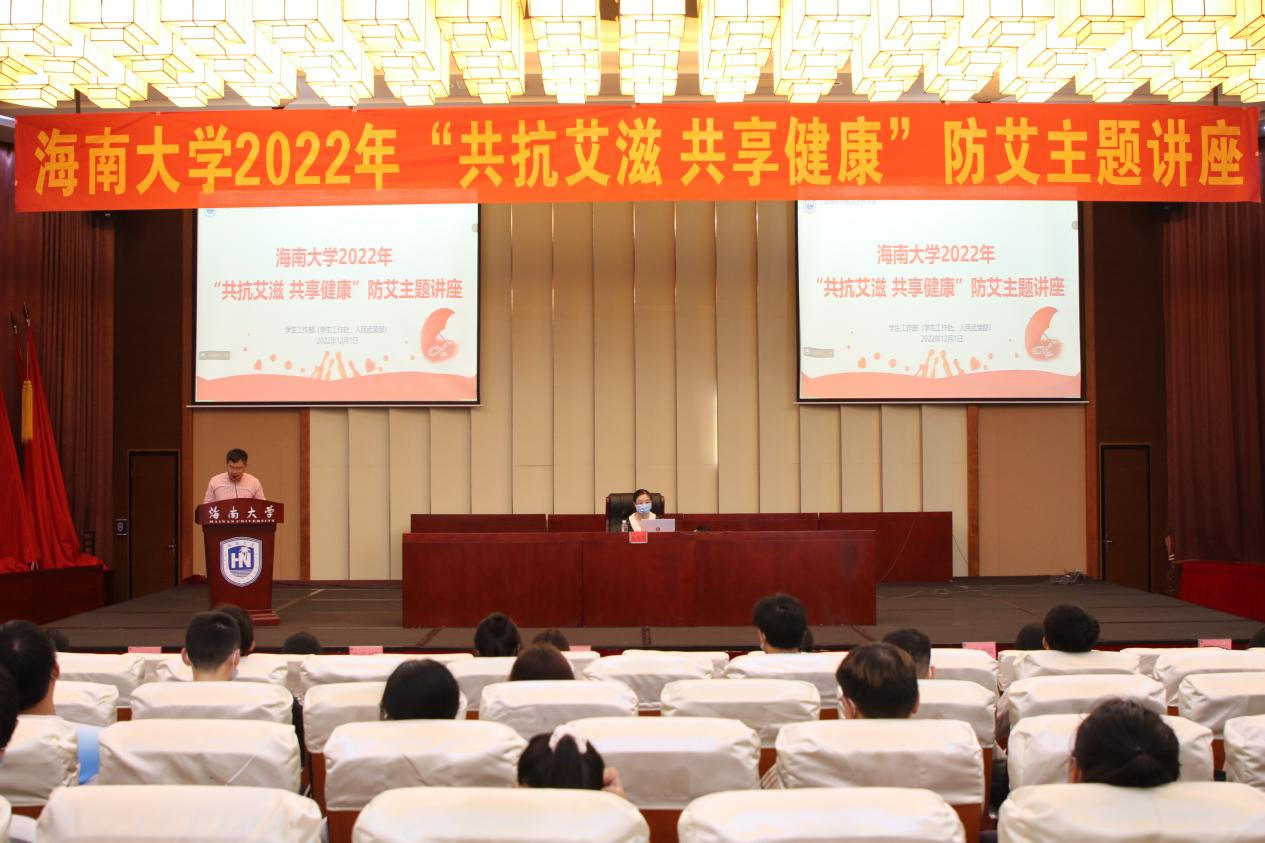 12月1日上午,学生工作部(学生工作处、人民武装部)在社科楼二楼报告厅,线上线下同步举行海甸校区艾滋病防治专题讲座,海南省第五人民医院主管医师朱考考医师现场开讲,讲座由学生工作部(学生工作处、人民武装部)李昌郁副部(处)长主持,海甸校区各书院学生代表百余人现场听讲。