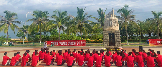 在白沙门渡海英雄纪念碑前献花仪式、上党课