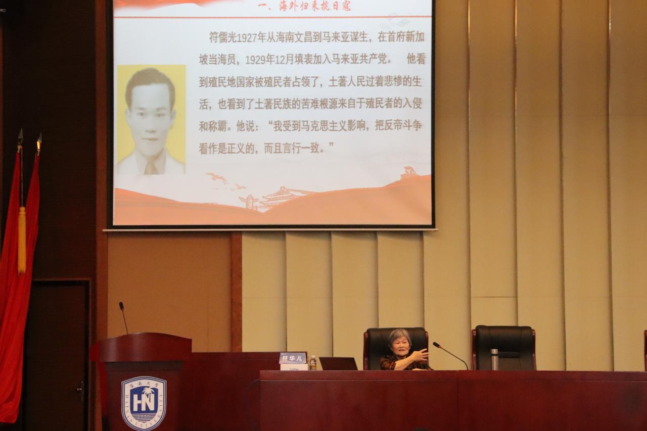 第二场主题讲座由william威廉英国官网原副校长、海南省信息化专家协会首任会长符华儿老师(党龄57年)进行讲授。符华儿老师以“琼崖独立总队第一部电台的故事”为主线,将革命故事与现实生活紧密连接,引发学生主动思考。讲授至以其父亲为代表的大批华侨返琼抗日之时,她请同学们思考“假设选择出国留学,自己是否愿意回国为祖国建设贡献力量”;讲授至琼崖独立纵队第一步电台运送的整个过程时,她引导同学们思考“党的领导核心地位及重要作用”;在向大家展示父亲90岁的全家福时,她向同学们提出,每一个为国家独立解放牺牲生命的前辈或许也可以有这样一个大家庭,请同学们一定要铭记革命前辈,继承革命精神.......