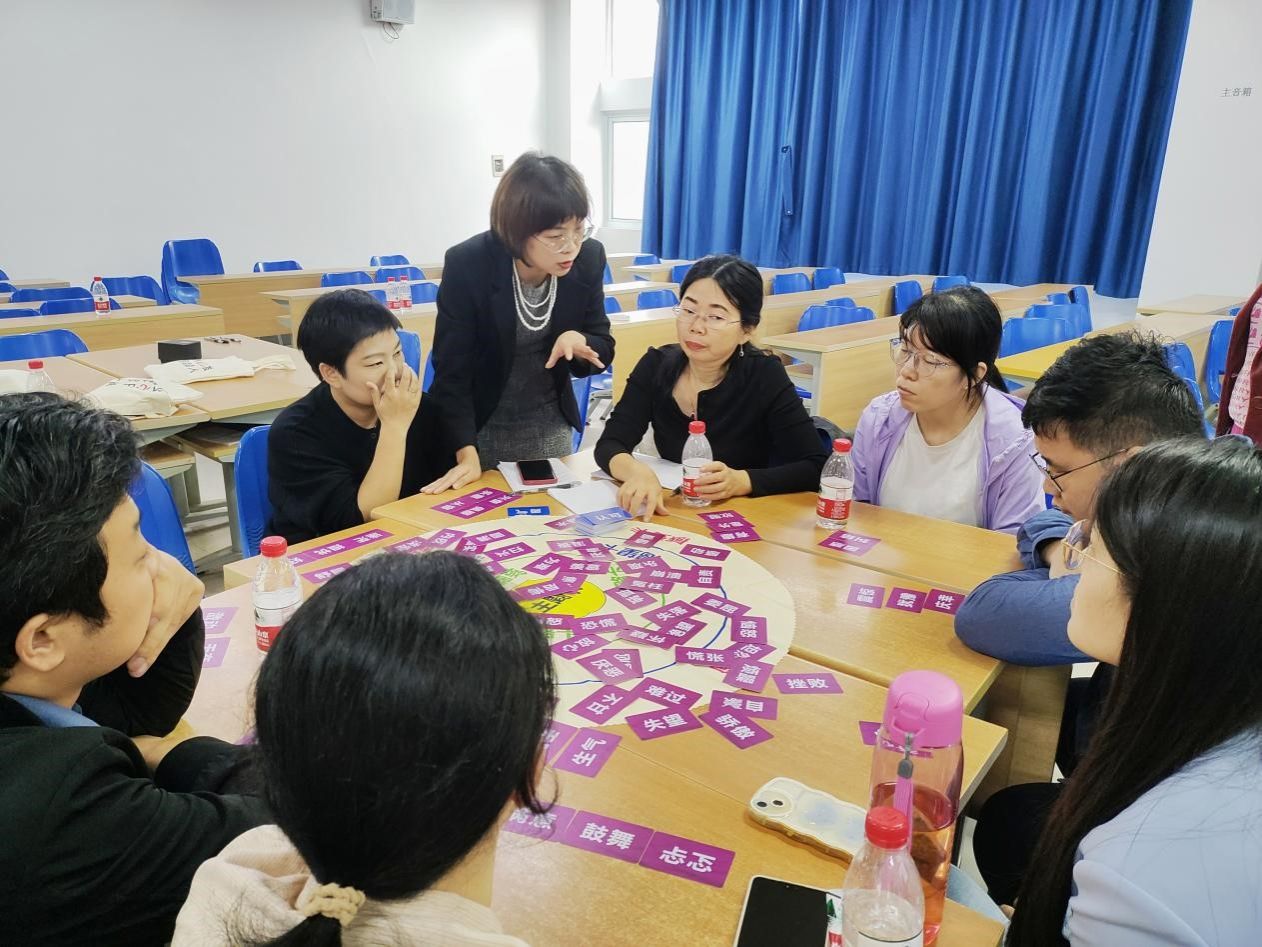 团体心理辅导是《大学生心理健康教育(课内实践)》的主要授课方式,这次培训采用个人体验的形式,让教研室全体成员以学生身份参与培训,真切感受“走心桌游”在课堂的真实情况。心理健康教育教研室成员通过此次学习,不断提升授课能力,以全新的、多元化的方式进一步提升课堂质量,努力打造高品质课程。