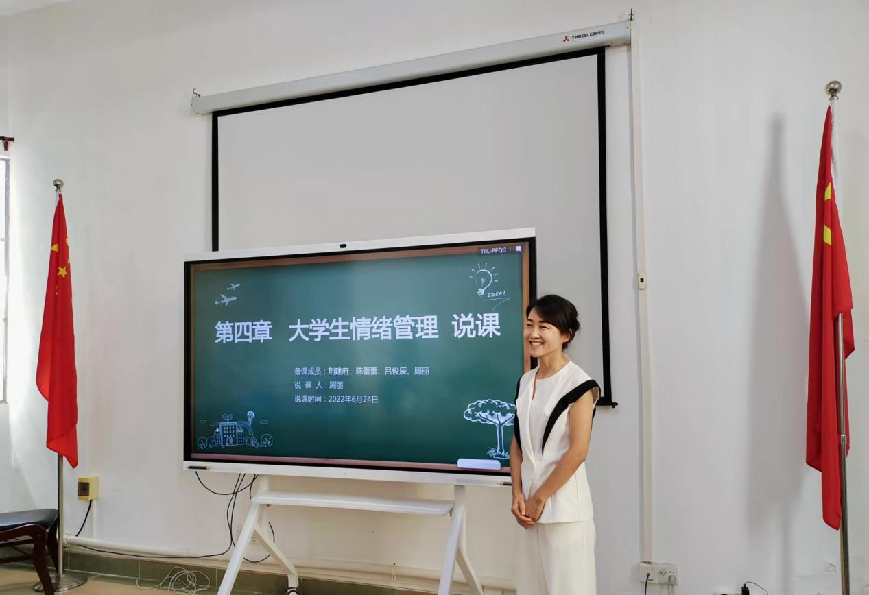 周丽和张成琳两位教师进行了说课考核。两位老师从教材、教法、学法、教学过程等方面,就《大学生情绪管理》这一主题阐述自己将如何开展课程教学。
