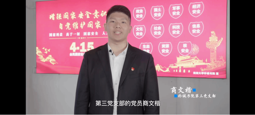 他具有极强的政治素养。拥护中国共产党的领导,积极进取、无私奉献、真诚开朗、乐于助人。2021年12月10日加入中国共产党,不断提高政治站位,努力学习党的基本理论和基础知识,并将理论与实践相结合,积极参加党课和党组织基层培训,了解关注党的最新精神和指示。认真学习贯彻习近平总书记“4·13”重要讲话、党的二十大报告相关精神,时刻牢记作为一名大学生身上肩负的伟大使命,为党和人民做贡献。