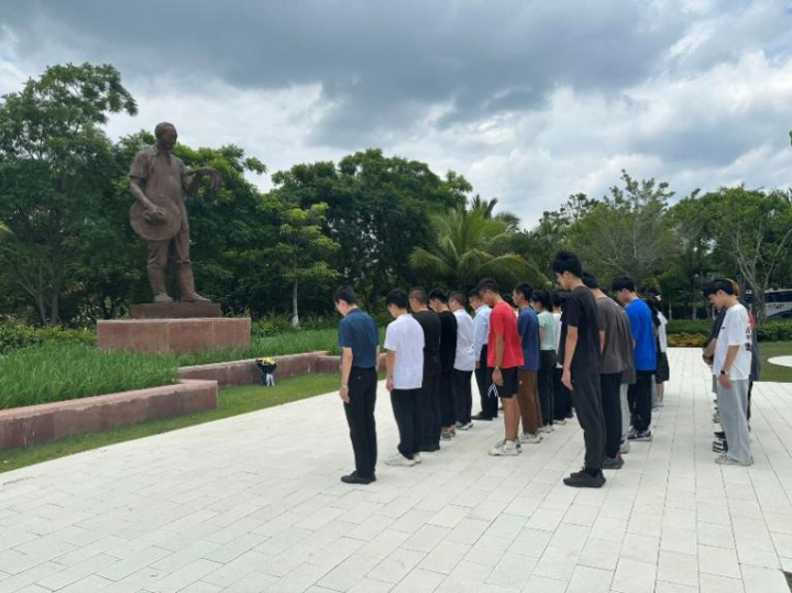 11日下午,实践队员专程前往水稻国家公园。队员们整齐列队,向袁隆平铜像敬献鲜花,聆听党员代表讲述袁隆平与海南的故事,向老一辈科技工作者致敬,向科学家精神致敬。