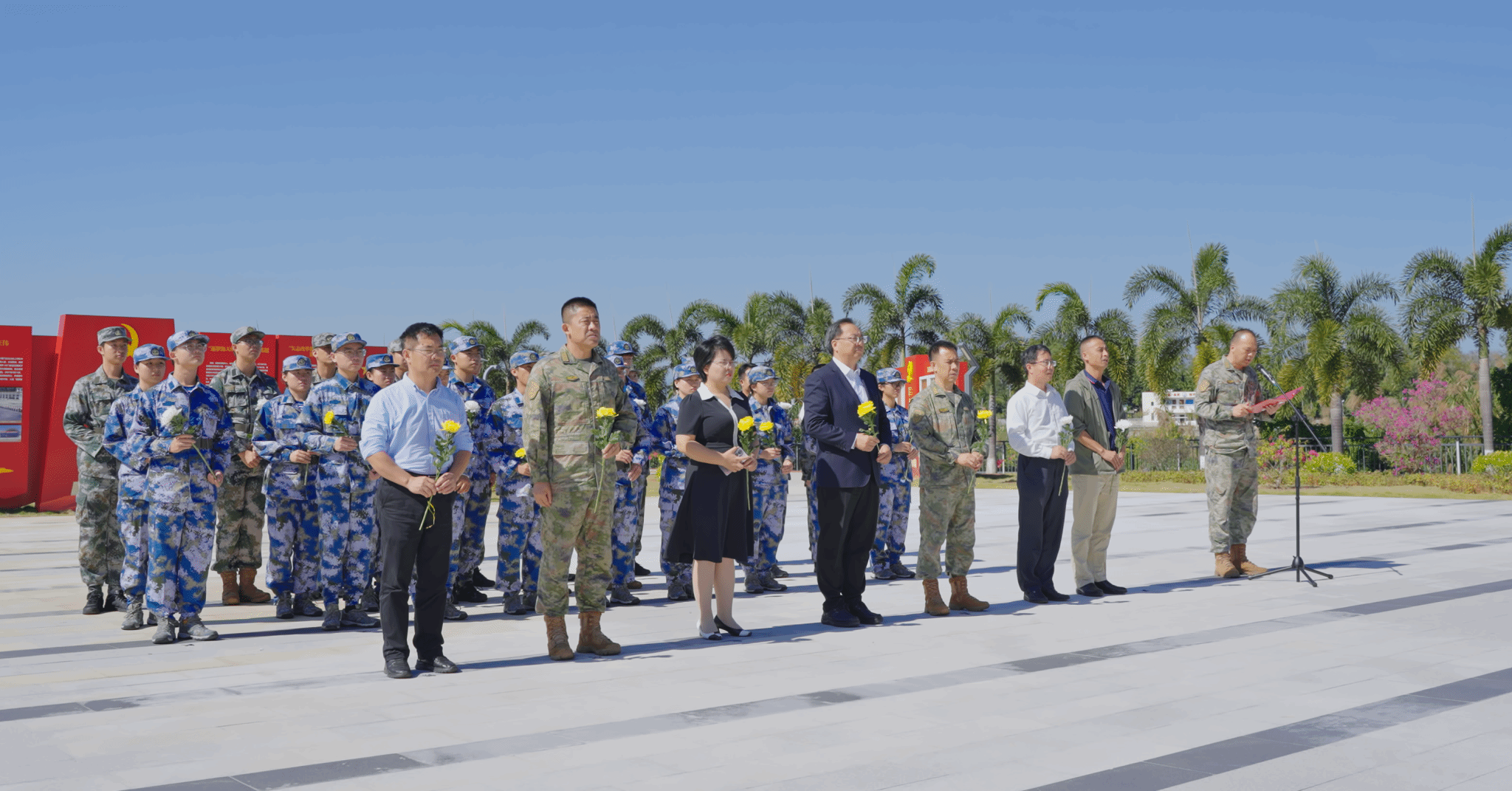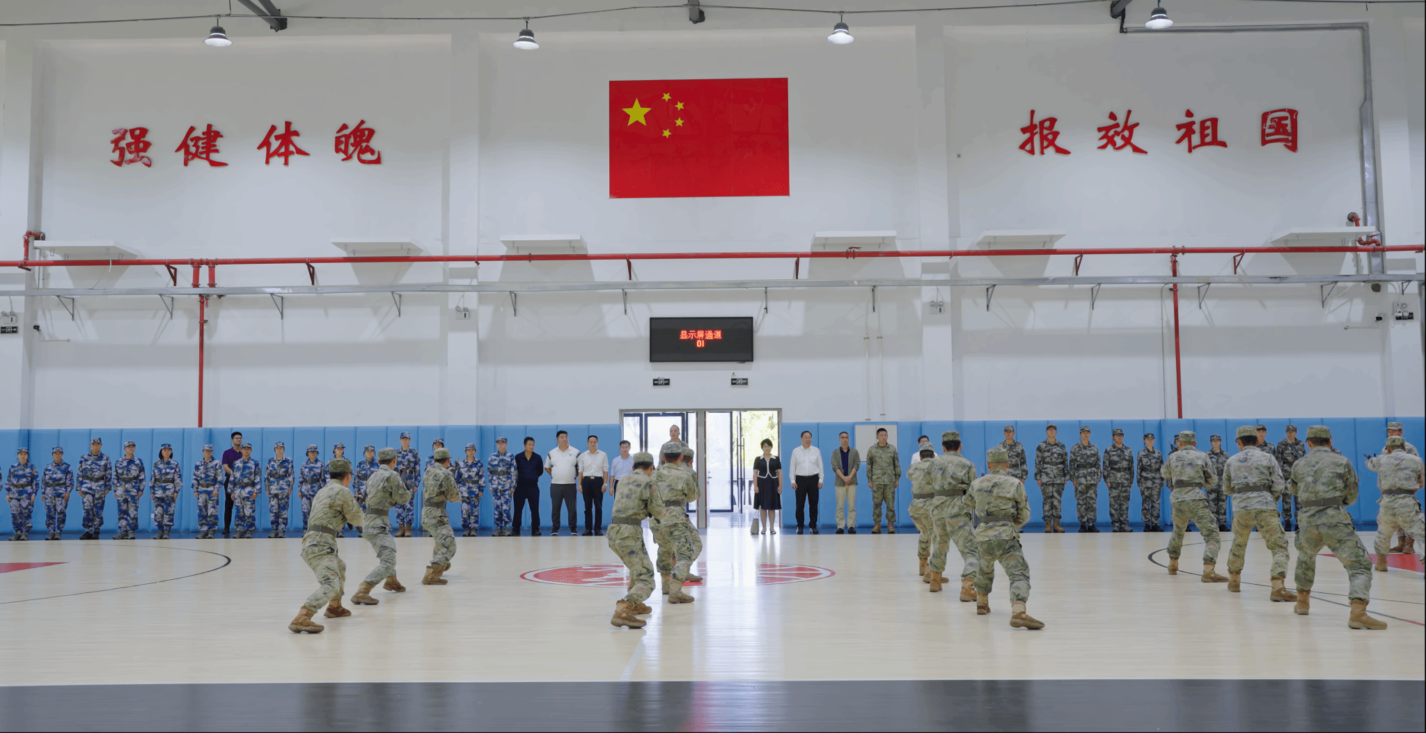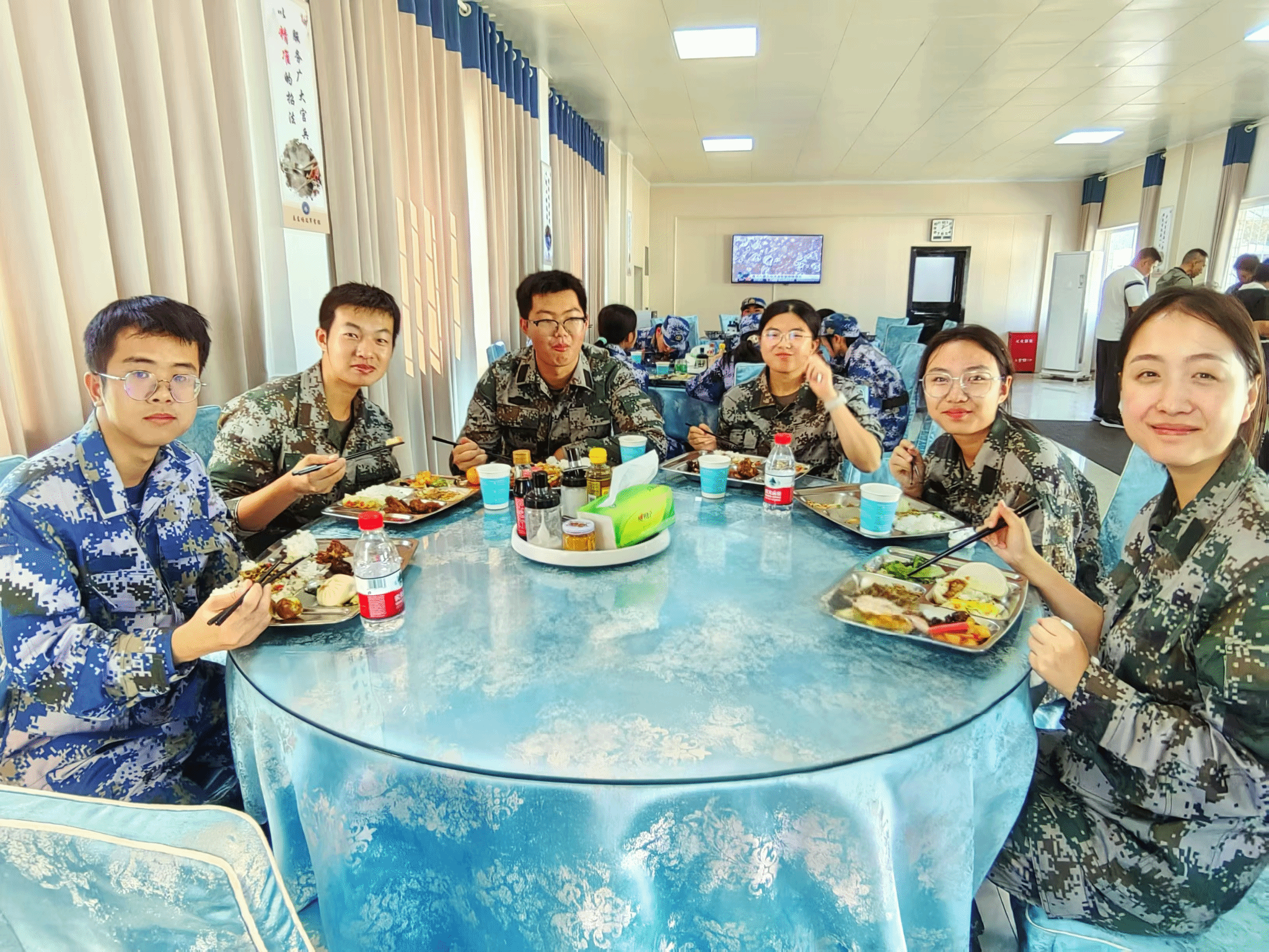 仪式后,大家在缅怀广场共同缅怀“海空卫士”王伟和“逐梦海天先锋”张超革命英烈,并深入训练、工作、生活等场所,全方位、多角度参观了官兵宿舍、健身房、体能训练室等场所设施,观看刺杀操训练,并与官兵共进午餐,体验部队伙食。通过实地参观学习,强化了爱国主义教育和国防教育,坚定了国防教育班学员的参军报国信心,激发了学员投身国防建设的积极性,有效推动学校国防教育工作高质量发展。
