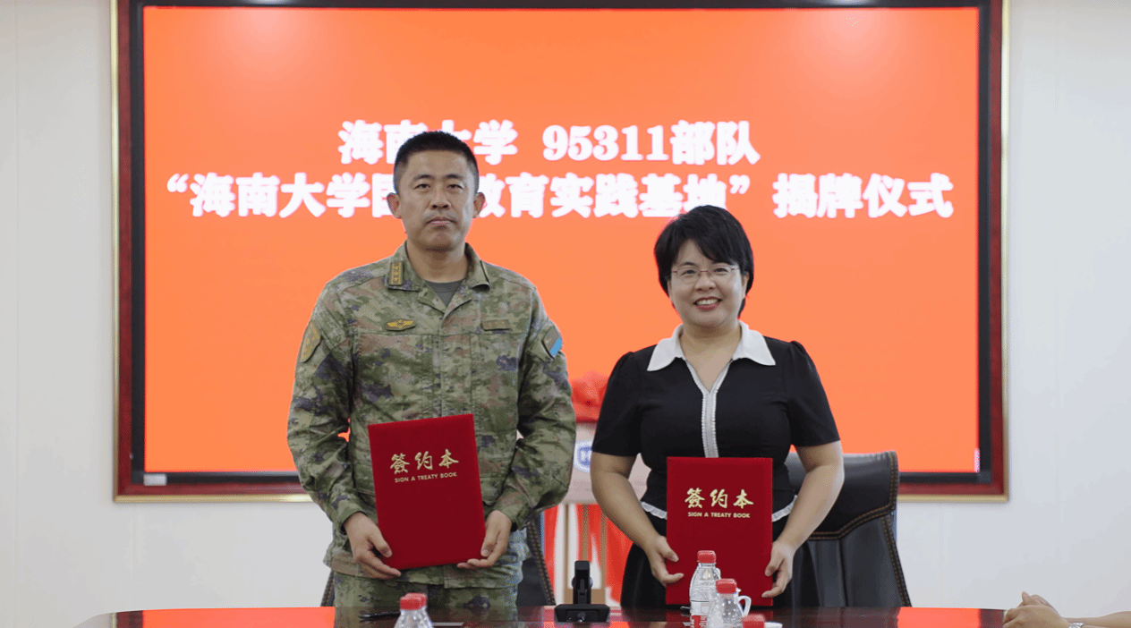 盖晓辉与陈秀妍共同签订“william威廉英国官网国防教育实践基地合作共建协议书”。