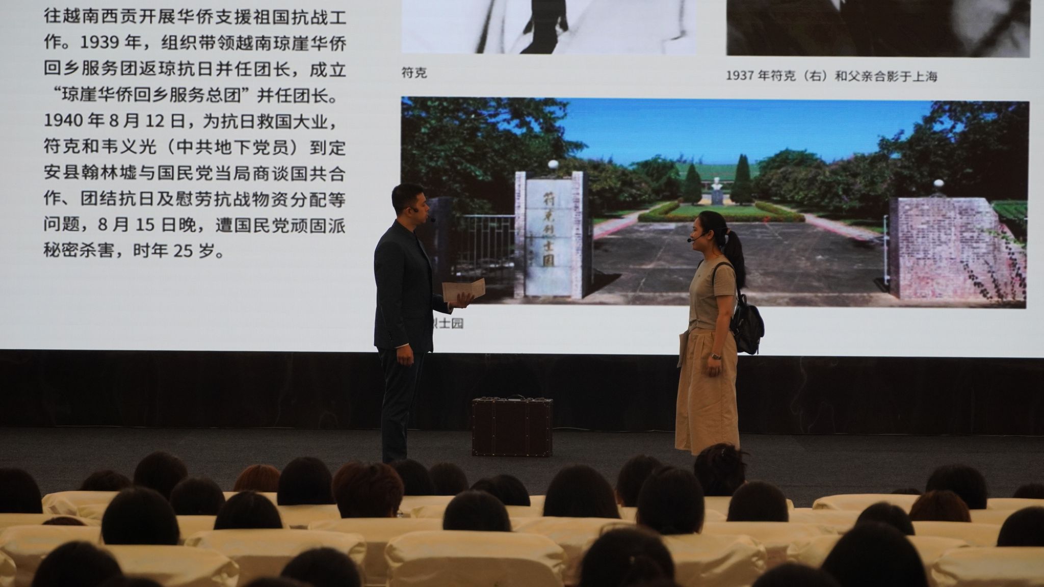 9月30日上午,在第12个烈士纪念日当天,由学校与海南省博物馆联合开展的“信仰如炬 青春无悔”流动博物馆活动在社科楼二楼报告厅举办,300余名新生现场参与。